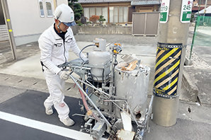 建築土木に興味があったので、工業高校の土木科に進学しました。高校生の頃は地面の上に立つ建物の方に関心があったので、いつの間にか綺麗な線が引いてあるなというくらいで道路のラインを気にした事はありませんでした。入社のきっかけは紹介だったのですが、いつも上ばかり見ていて足元を見たことが無かったので、建築土木の分野でもこういった仕事があるんだと、新鮮な驚きと興味がわいてきて入社を決めました。