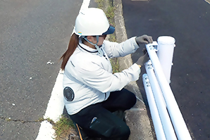 女性ばかりの部署で事務仕事が中心でしたが、作業補助として現場に行くこともありました。入社して3年目の夏、男性ばかりの工事管理部に異動になりました。官公庁への営業から工事書類作成、現場の管理や作業まで、女性だからと特別扱いされないよう何でもやるようにしています。