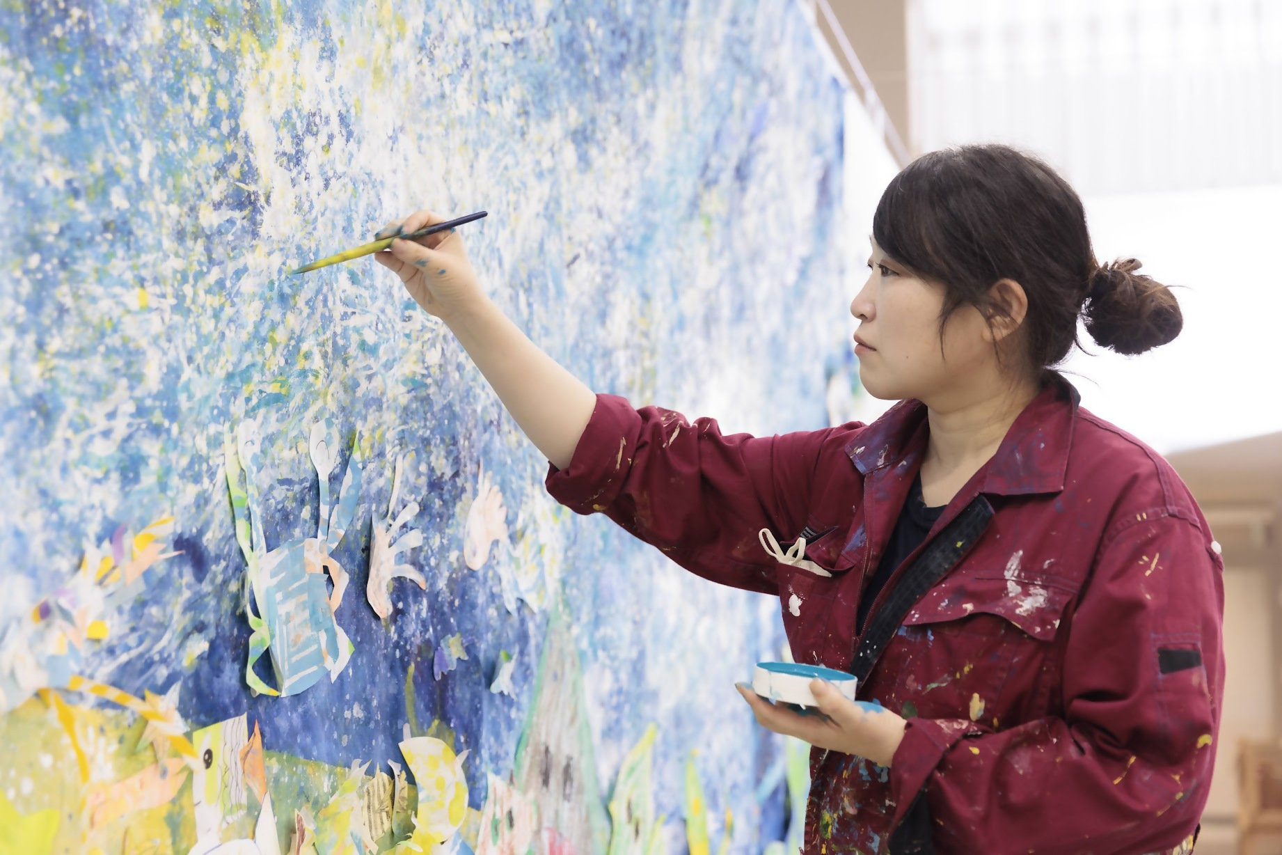 瑞穂市出身の大平由香理さんは、大学在学時から画家としての活動に取り組み、2013年「アートアワードトーキョー丸の内 2013 」にて佐藤直樹賞の受賞を皮切りに、別府現代芸術フェスティバル 2015「混浴温泉世界」にて末広温泉浴場の壁画制作や、上野の森美術館でのVOCA展への選出、第 8 回東山魁夷記念 日経日本画大賞展への選出など、画家として活躍されています。2023年、熊本県葦北郡にあるつなぎ美術館にて開催された「大平由香理 個展 波をつなぐ」では、「滞在制作」という土地に滞在して作品を制作するスタイルで作品を完成させるなど、様々な場所で制作活動を展開しています。