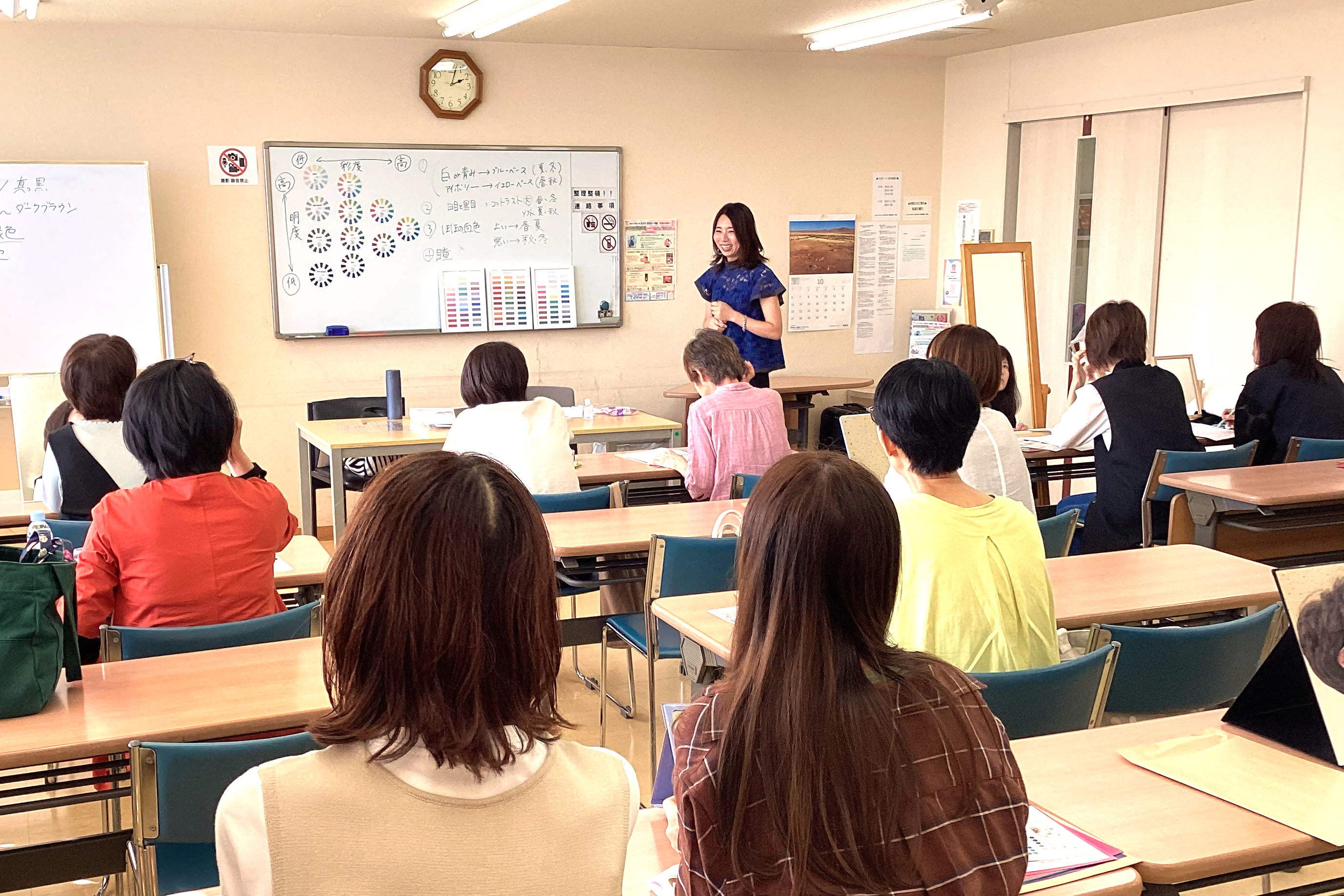 現在は岐阜・名古屋を中心に、予約をいただいたうえでのカウンセリングやパーソナルカラー診断、診断結果に基づいたショッピング同行のほか、企業主催の顧客向けイベント出店、セミナー講師などの活動をおこなっています。 「自分に似合う」の基準になるのが診断です。パーソナルカラー診断、骨格診断のほか、その方が持っている内面性や価値観からファッションスタイルを導き出すパーソナルスタイル診断などを行っています。パーソナルカラー診断では、お似合いの色のドレープを当てると顔色や顔の印象がガラッと変わるので、お客様自身も驚かれます。「好き」と「似合う」は違うので、必ずしも似合う色と好きな色が一致するとは限りません。でも、ファッションは楽しいもの。提案する服の素材や形を考えたり、顔まわりに好きな色を挟んだり、好きを否定しないアドバイスを心がけています。 お客様は、似合う色やメイクが知りたいという女性や、若いころ着ていた服が似合わなくなってきたという方、ライフステージの変化に合わせて服を一新したいという方などさまざま。男性の顧客もいらっしゃいます。